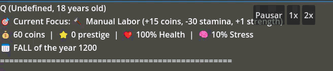 The way you play has changed. Instead of choosing an action that consumes a turn, you now set a "Focus" for your character (e.g., "Focus on Manual Labor"). The character then performs this task autonomously as time passes. And here’s the most exciting part: if you don't set a focus, the character's AI takes over! Based on their traits (like "Ambitious"), your character will choose their own focus, pursuing their own goals. The game can now, quite literally, play itself, creating unexpected stories.